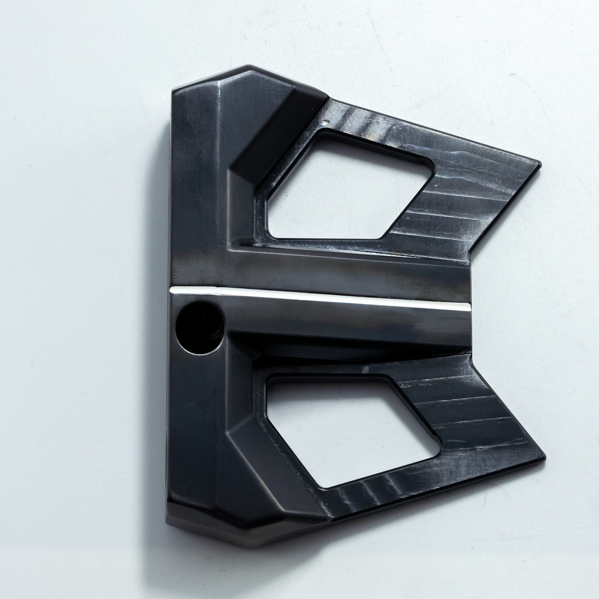 For the modernist seeking precision design, a graduating profile that flows into the putting surface. Centre "T" aid in consistent alignment, while muscular shoulders help increase MOI. Slight Toe hang